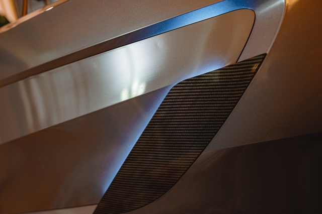 靓丽的外壳是ABS材质,易于造型便于打理,ABS也是航空、汽车领域中常见的轻量化材料。让人意外的是还有真空电镀和碳纤维饰板,玩车的朋友会知道,碳纤维常用于打造跑车、赛车的高性能改装件,从细节就能看出这款产品的高端定位。