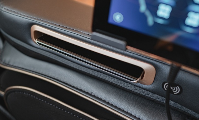 侧面拉手的这个位置是手机无线充电充电板,比有线充方便太多。