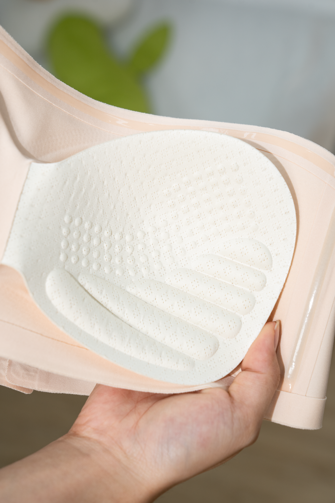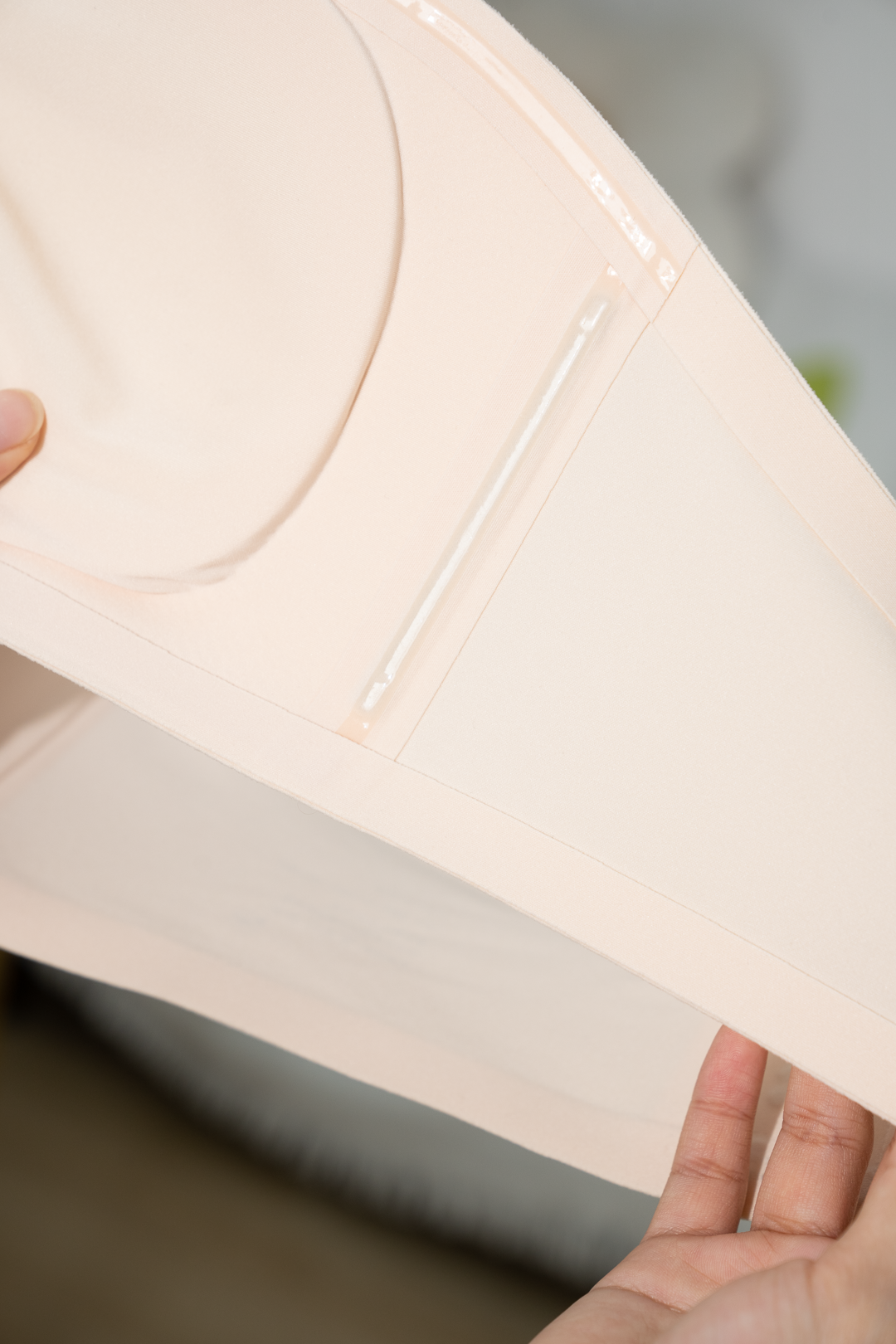 除了硅胶条之外,内衣的侧后片也做了点胶工艺,辅助内衣更加稳固不往下滑。