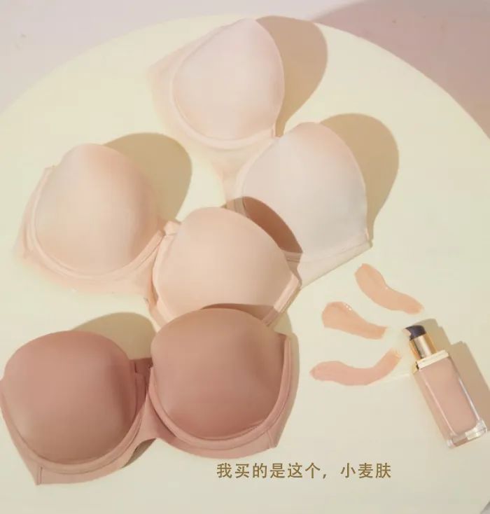 买无肩带内衣,我们一般会看黑、白、肤色这三种,但是考虑到浅色衣服会透色的问题,肤色是最最实用的。