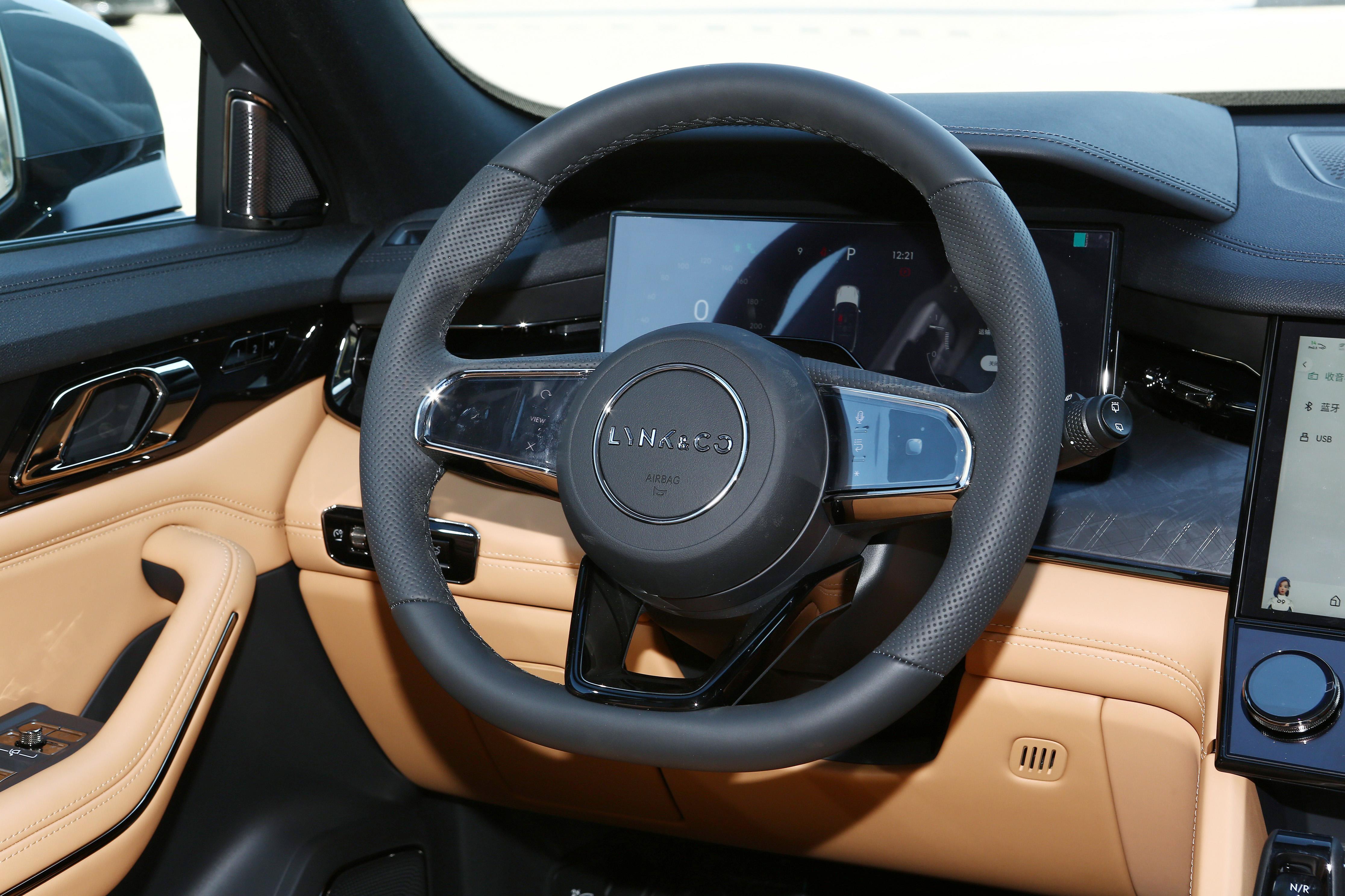 内饰方面,领克09采用了环抱式的设计风格,整体功能区域简洁明了。双拼色的内饰设计突显出一定的温馨感,车厢内用料厚道,大面积的软性材质以及皮质包覆提升了一定的档次感。三幅式的多功能方向盘造型时尚美观,采用真皮材质,手感较为细腻,支持电动上下前后四向调节,配备加热以及记忆功能。12.3英寸的全液晶仪表盘显示画面清晰直观,可查看行车信息较为丰富。中控台则搭载一块12英寸的液晶屏幕,支持GPS导航系统、蓝牙/车载电话、车联网、OTA升级、Wi-Fi热点、面部识别以及语音识别控制系统等实用功能。