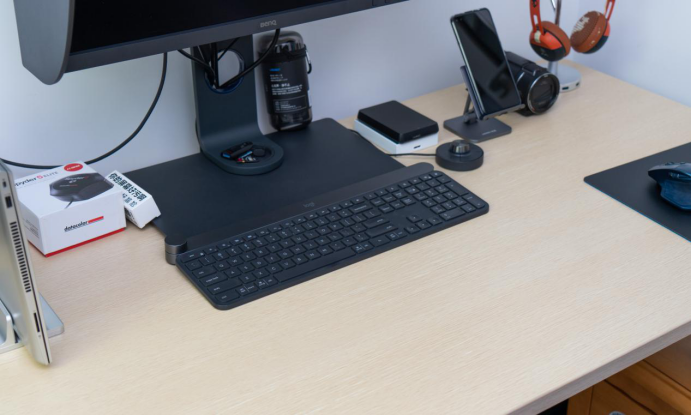 对相机、镜头进行维护保养时,宽桌面的优势体现出来了,把键盘往前一推,就可以腾出很大的桌面空间。