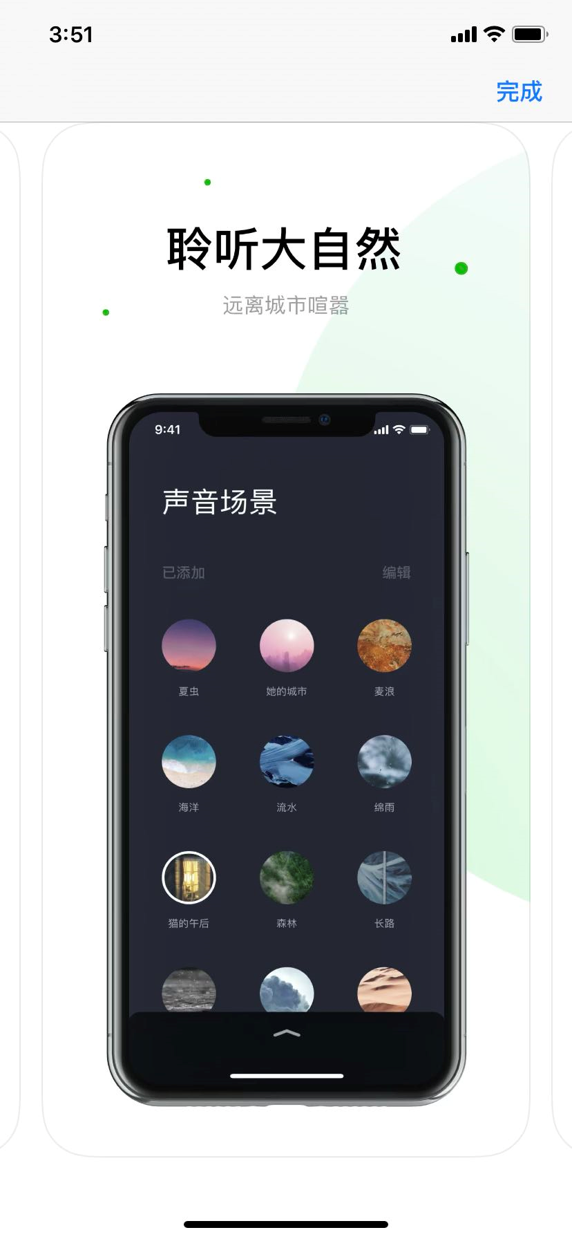 1、软件内有多种来自大自然的声音,夜晚打开音效,有助眠的作用