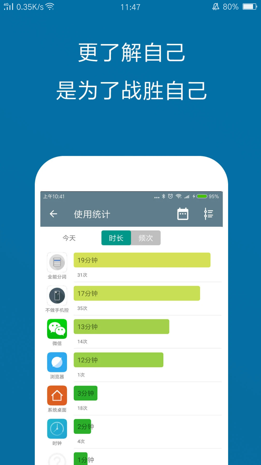 每天你都会收到一个手机使用时间的报告,可以查看有没有进步。