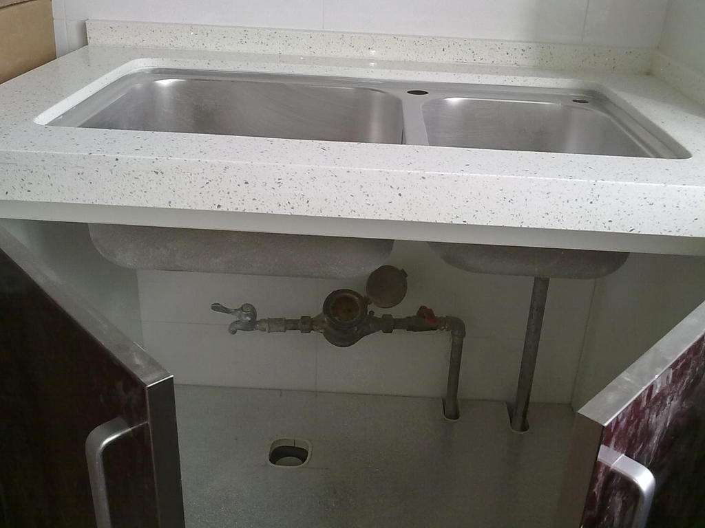 这点用在其他的地方的确不错,但是水槽下面的地柜最接近水源,时间一长还容易损坏,更换时还容易留下一些划痕、胶印等。