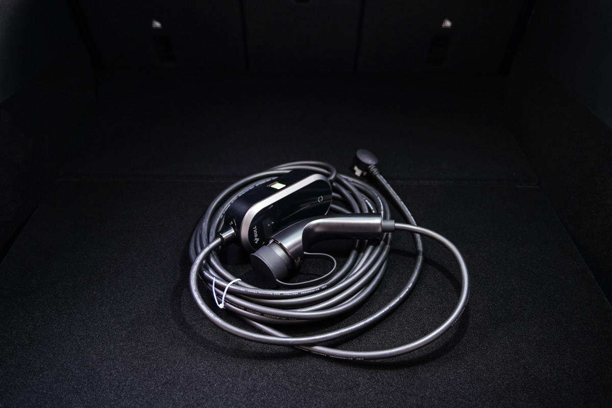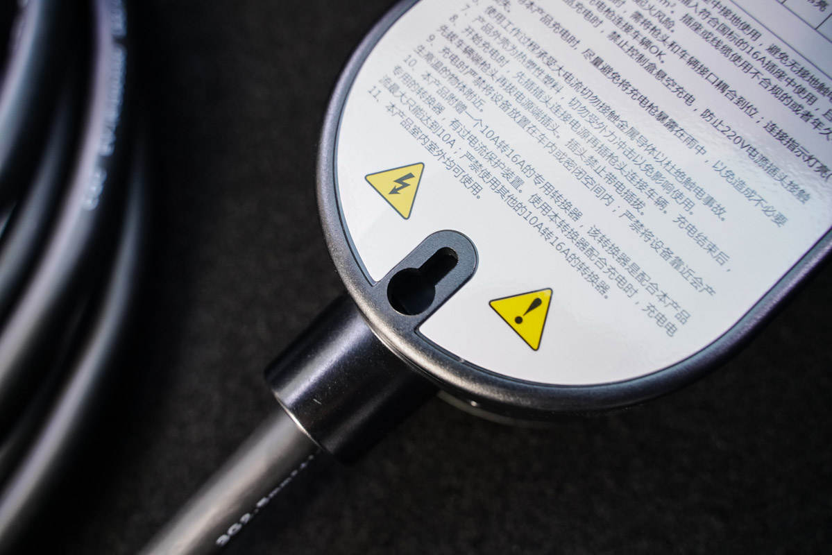 除了新能源随车充本体外,提包里还附带了转换器,用于使用10A规格的插座使用。