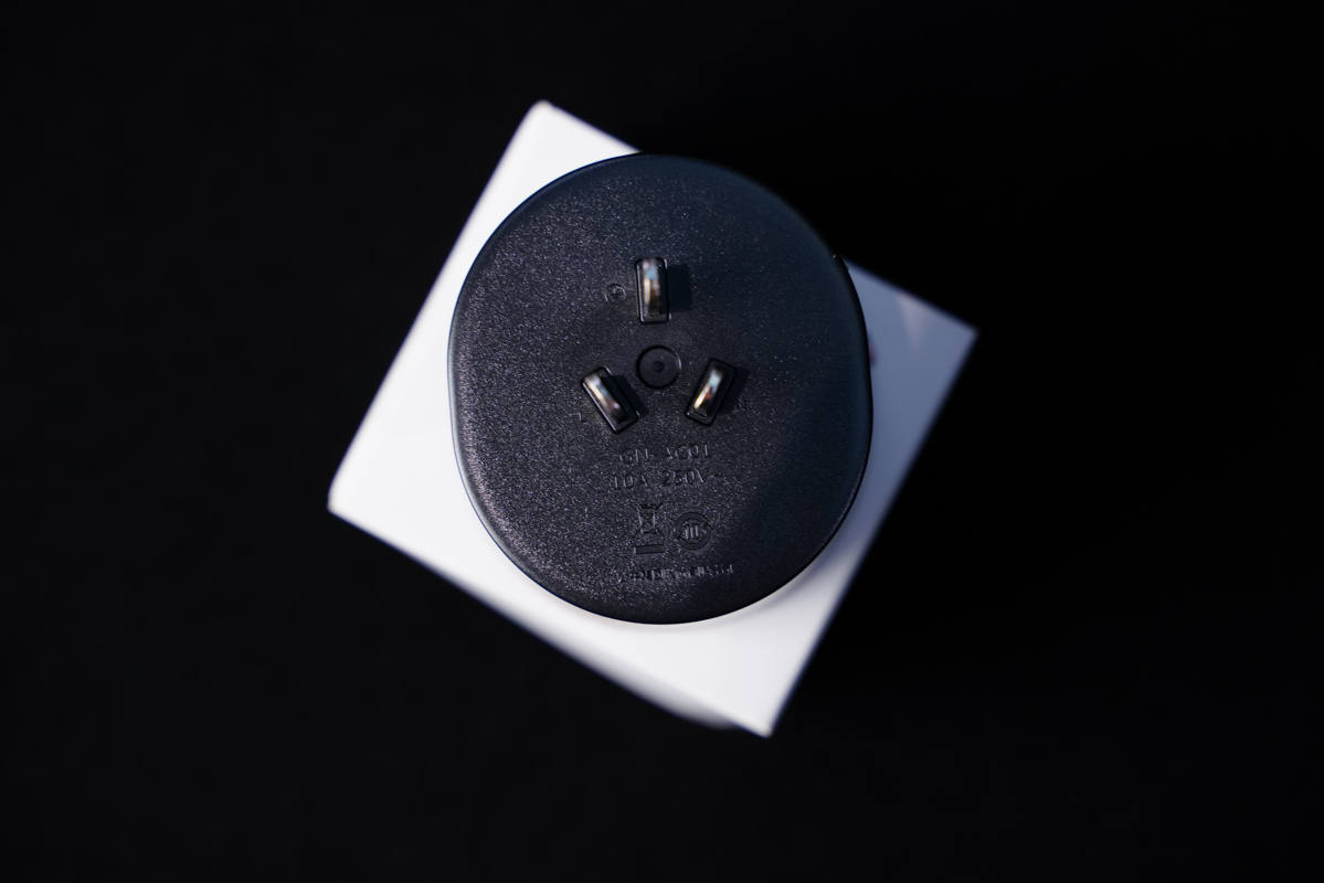 将公牛新能源随车充连接至电源插座,由于连接的是10A规格的电源插座,所以在此次充电连接中需要使用附带的转换器才可以正常连接充电。