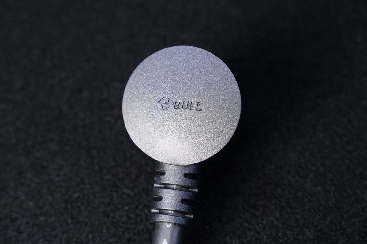 先来逐个了解,枪头部分采用了亮黑加烤漆黑的外观设计,正面凹印着BULL的品牌Logo。