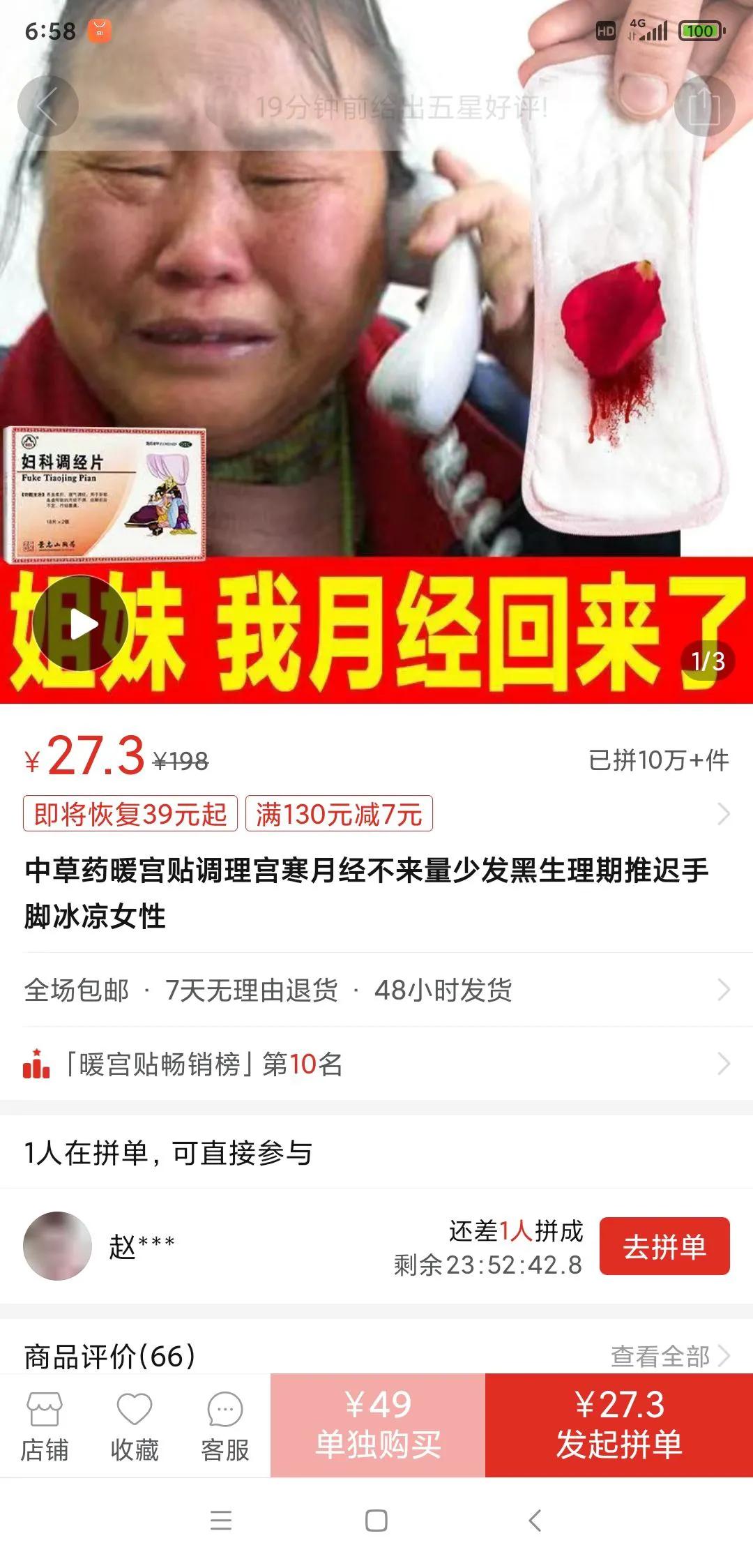 4.“看完评论一时不知如何是好,惊现某好多男子为了亲测拼多多,竟来了姨妈”。