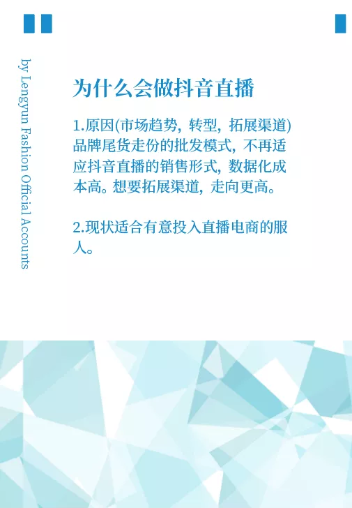 品牌尾货走份的批发模式,不再适应抖音直播的销售形式,数据化成本高。想要拓展渠道,走向更高。