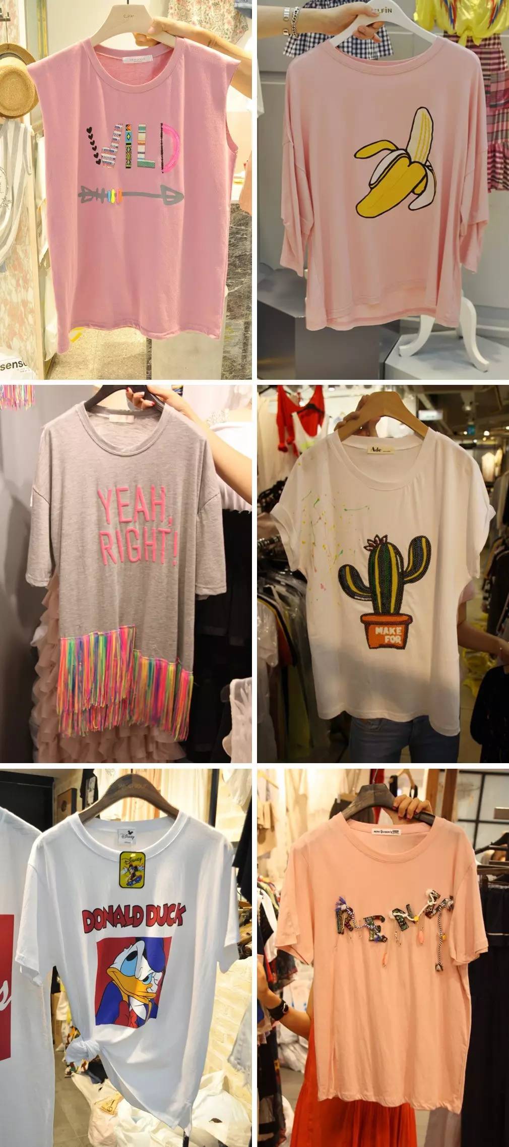 来到七月,甜美风的T恤绝对是市场的宠儿,其销量也一直居高不下。可爱又极具趣味性的图案是此类T恤的卖点所在,同时今夏大热的粉色也是拿货量最高的!