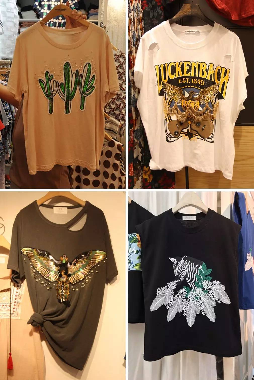 其实西部风在今年极受各大品牌的宠爱,但是真正的来到市场中,西部风的表现就不那么理想了。但是此类风格的服装虽然不是大热款,但是却有很多忠实的粉丝,同时这样西部风的服装又是市场中少见的款,所以作为投资,这样的T恤都是不错的选择!
