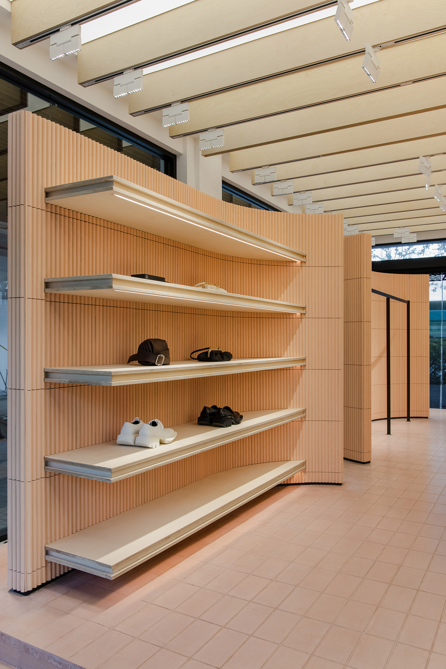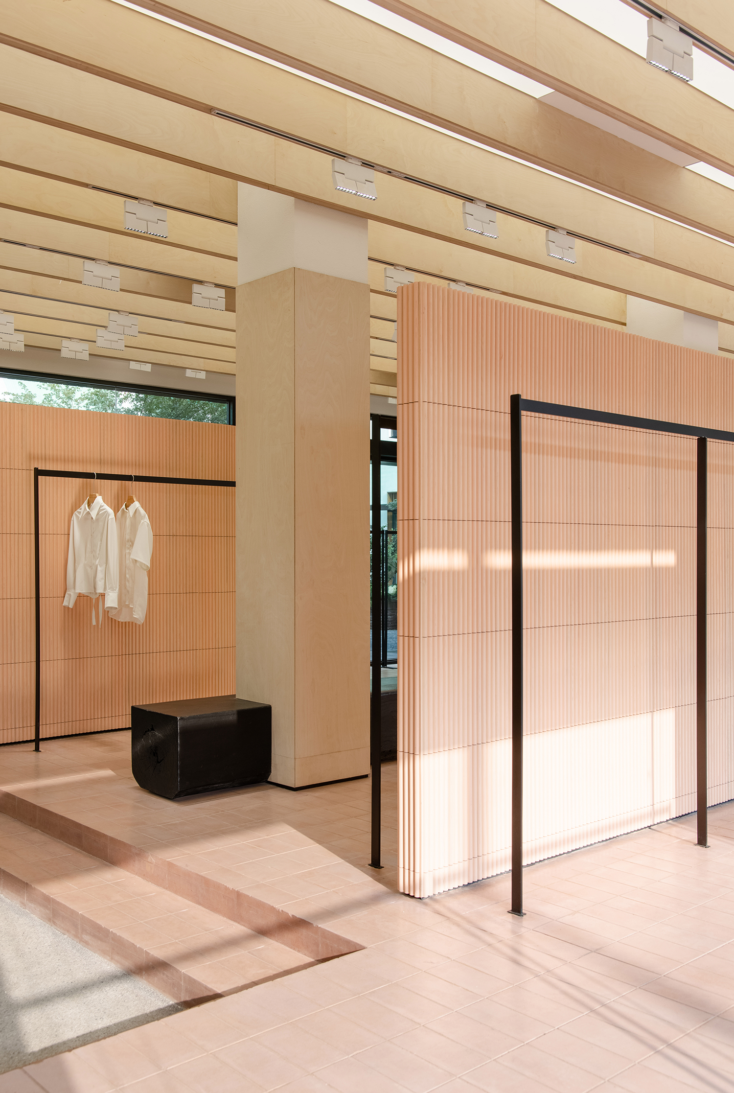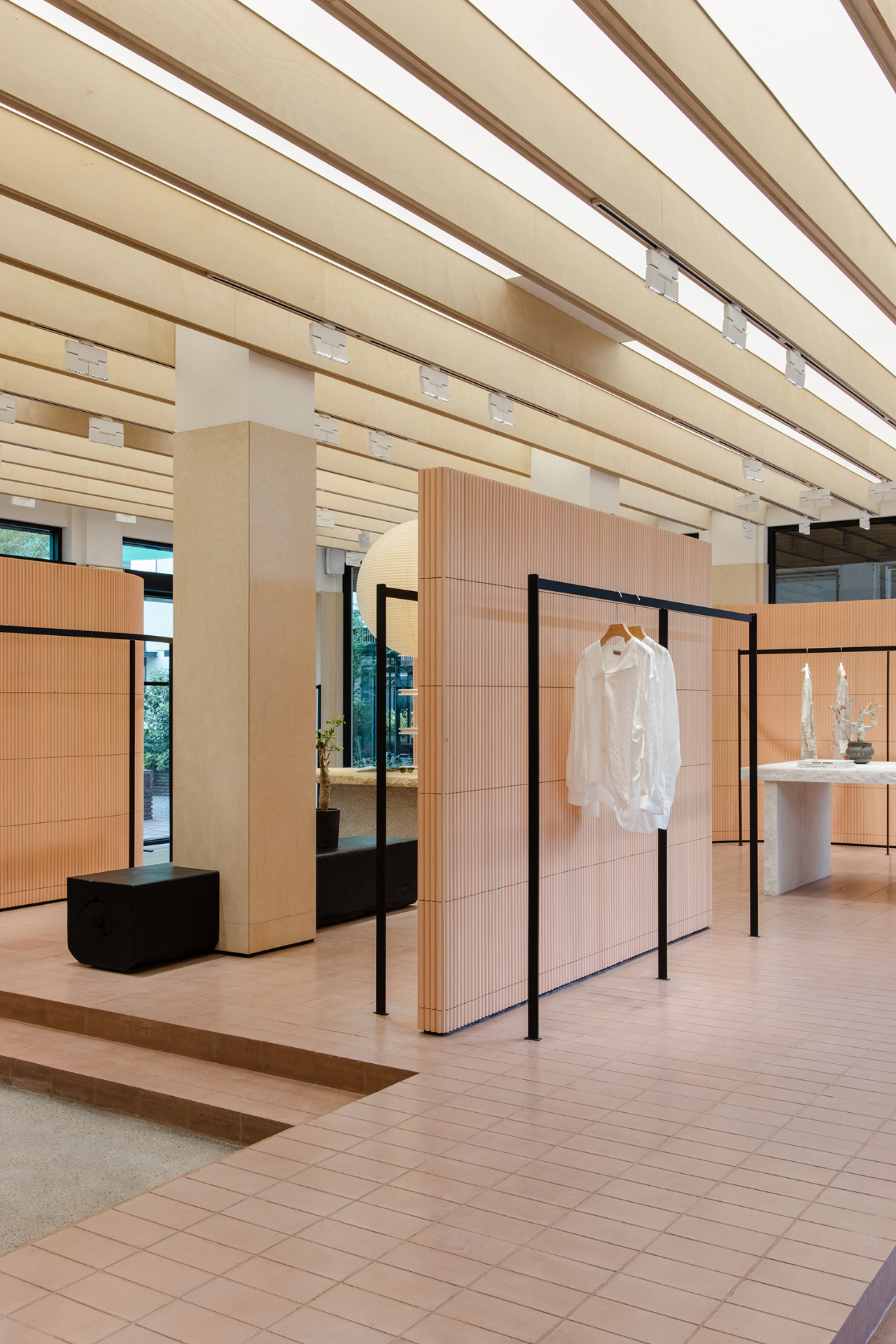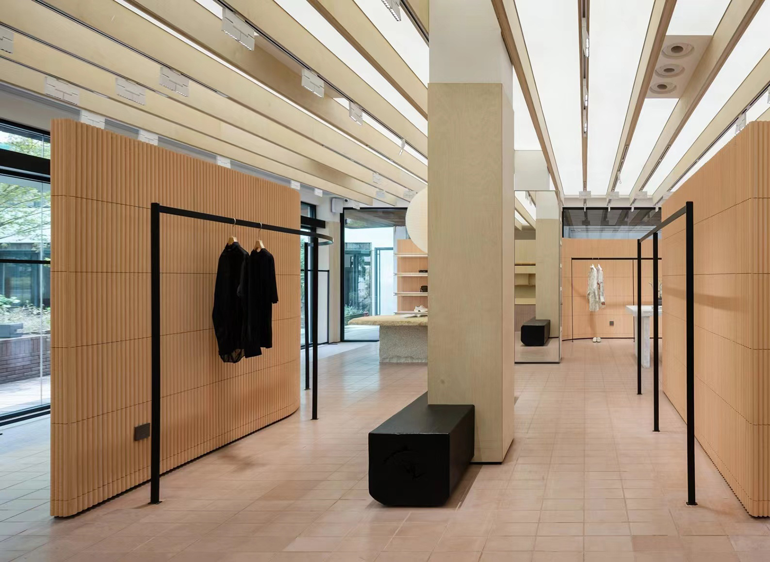 基于商品是空间的主角,而空间作为一个极具包容的容器,既保持商品的独立个性,又不失空间服务于人的本质。展示的装置结构以序列的形式分布于空间,将功能动线彼此关联,当所有商品被陈列其中,空间以最真实可被感知的形态,将品牌的个性与理念传达给每一位消费者。