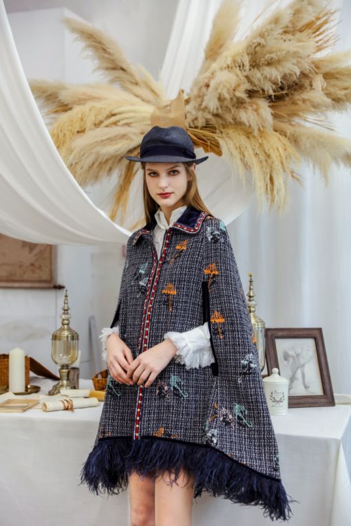有了材料,Rainbow还注意在加工工艺上下功夫。尽管对法国的服饰了如指掌,也并不妨碍她对中国传统刺绣的热衷,liailia黎雅李的每件作品必有手工钉珠和刺绣的点缀与提亮,一针一线里,都彰显着那精雕细琢的匠心。