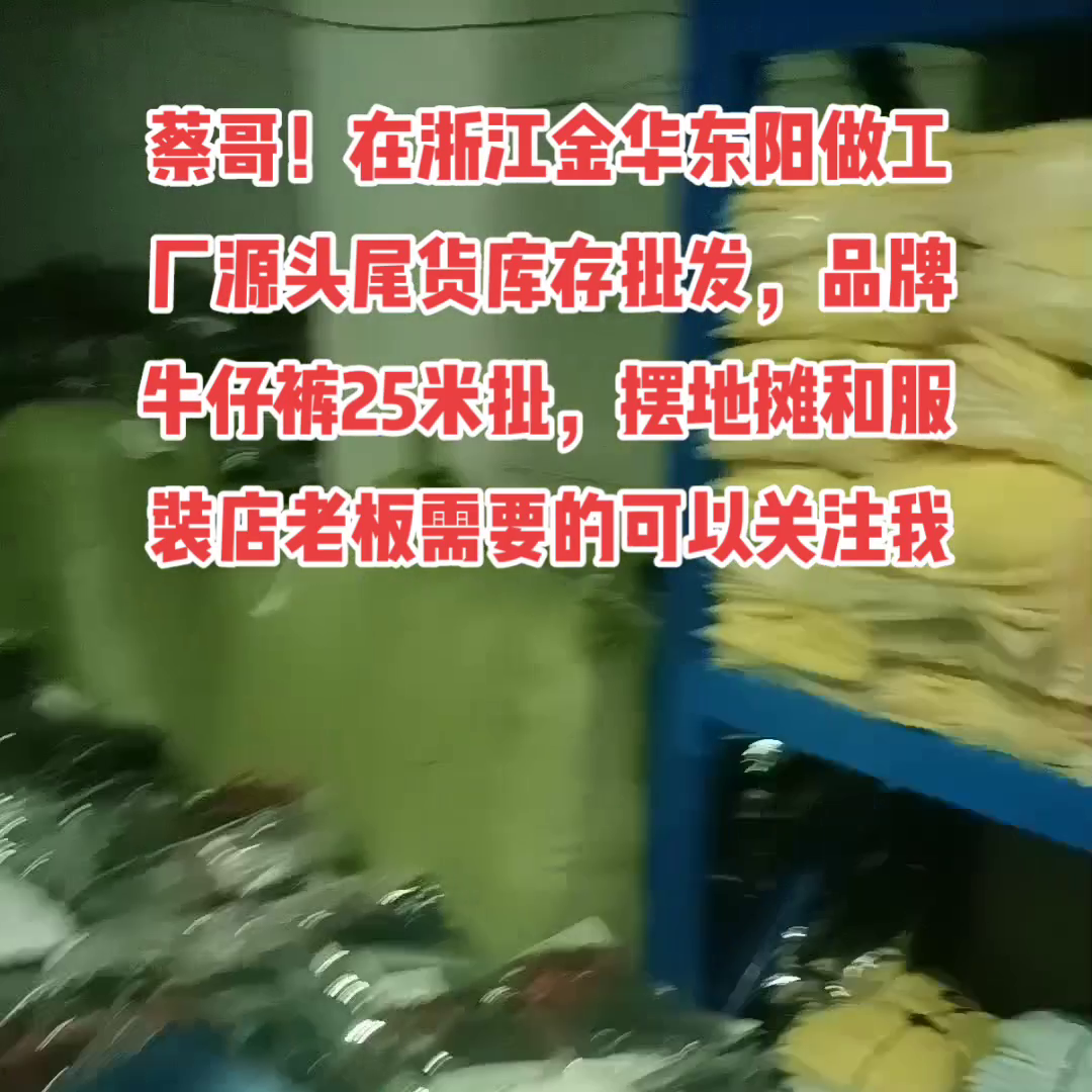 蔡哥!在浙江金华东阳做工,工厂源头尾货库存批发,品牌:牛仔裤25米批,摆地摊和服。