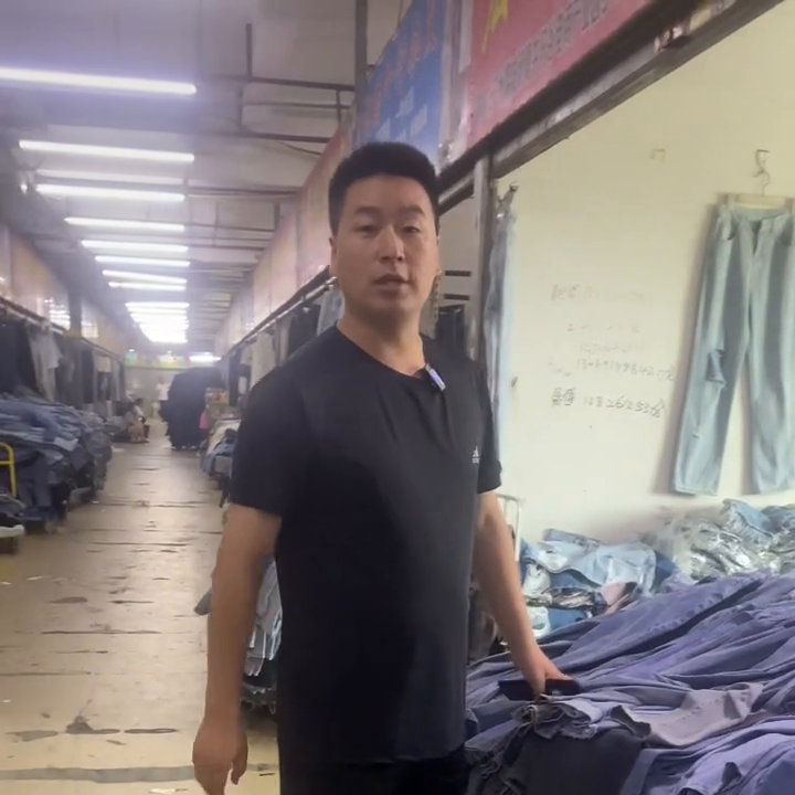 哈喽大家好,我是小霍。广州牛仔裤拿货最便宜的地方今天终于找到了。看我身后没有广州增城区新塘的牛仔谷,这里的牛仔裤非常的便宜。到底有多便宜?今天大家跟着我的镜头一起去看一下里面的市场行情。这个3楼都是做尾货的,来看一下这种牛仔裤,老板。这种的11块。