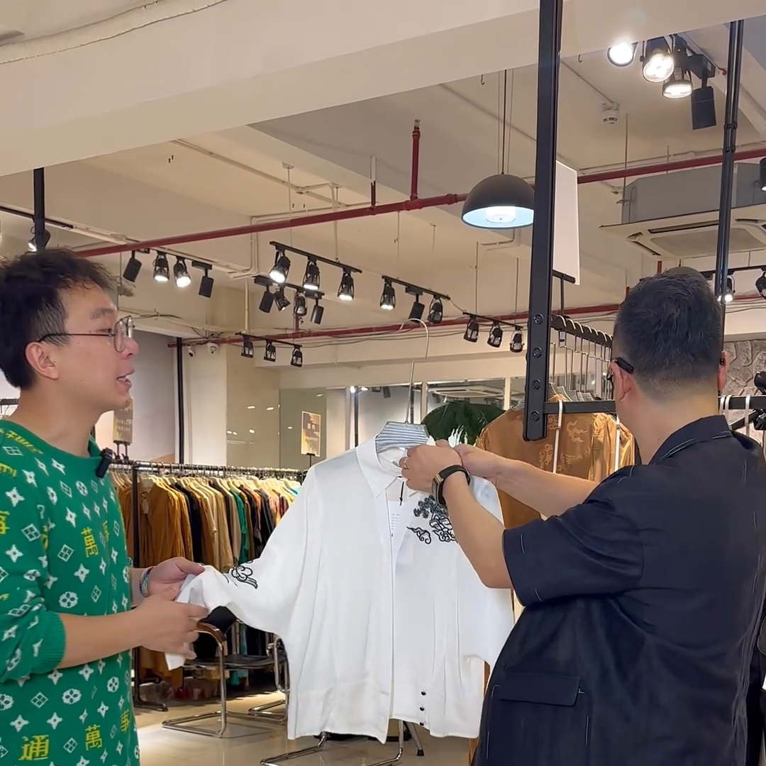 有货吗?有货。因为这个"选品中心"经常有人来试版,你们这里一些老款也是承接给大主播的是吧?是的,主播也可以来选款。这个"选品中心"应该是对喜欢国风类型的主播,中大厨的主播是特别友好的。你们这里主播最多的时候播了一场多少?几十万还是有的,老款会给主播播一下。是的,一般新款会有一个控货的阶段专供实体店的,每一件都有一些工艺的特点。这个是真皮,这个真皮也是非常有国风特色的图案。再加上一个工艺,反正是喜欢这种雅痞文艺风、新式的国风。非常小众的国风一定要来郑总家看一看,大家一定要来,你一定会有意想不到的收获。关注南油万事通,下集更精彩。