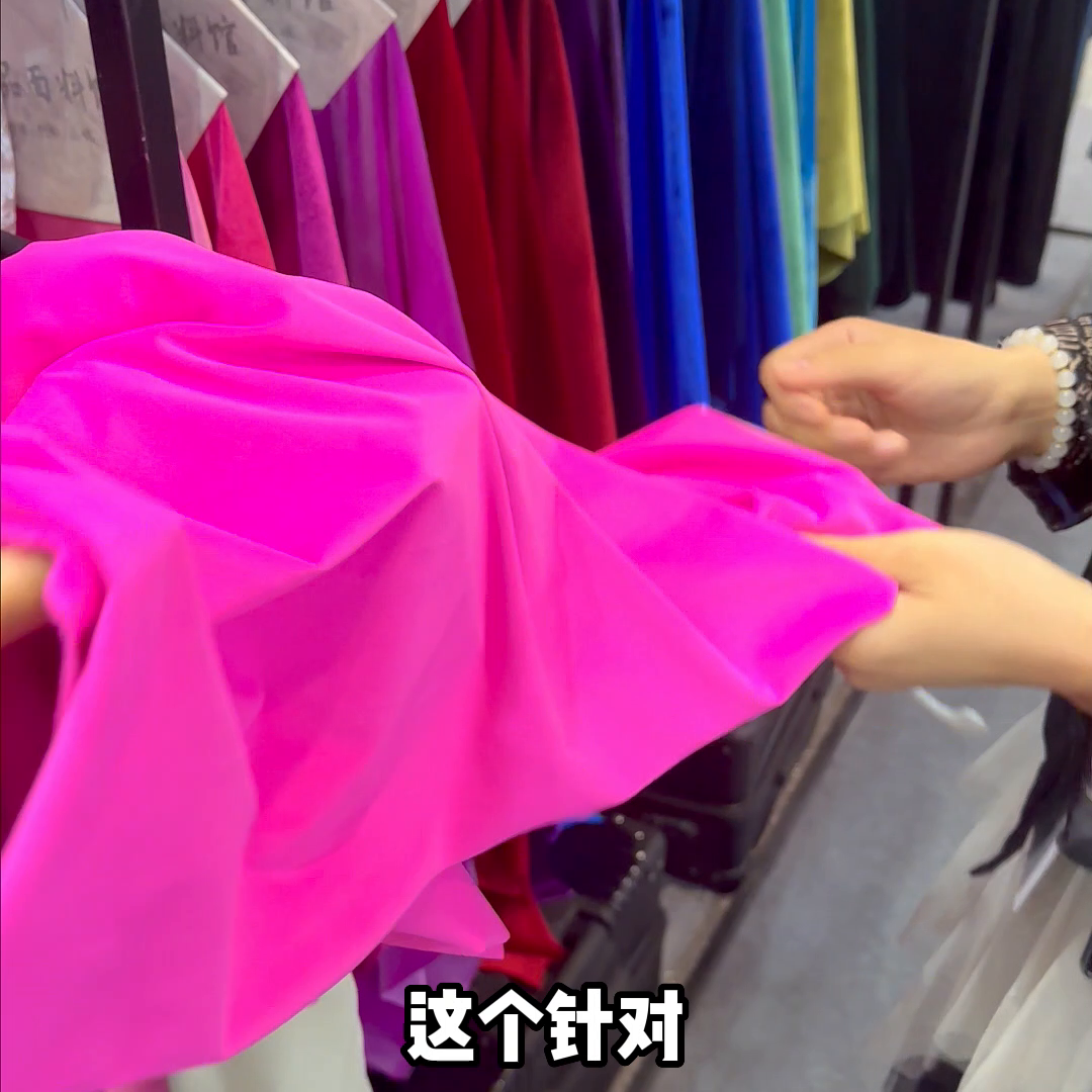 什么意思,就是品质类。做高.端的还是一样你们家的。这两天来的基本上都是做服装的,做品牌的,做工厂的。然后对接一些,就是说还有二批那种市场的。这个是真丝丝绒,对这个是真丝丝绒,百分百桑蚕丝。对就是很多来深圳拿货的客人,就是做女.装店的高.端店主。为什么会喜欢真丝丝绒?你觉得会有什么不一样吗?