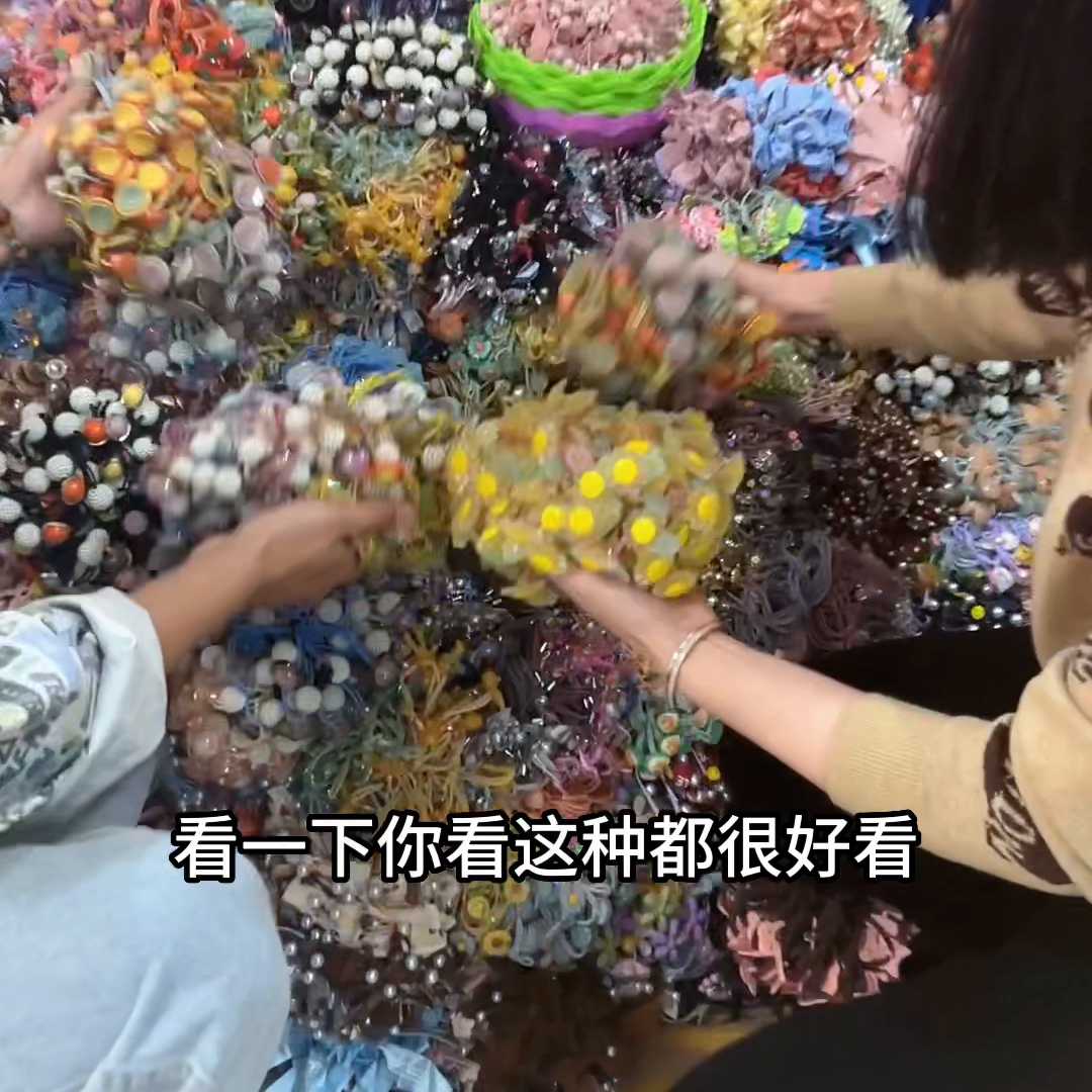 摆摊在公园夜市,就卖我手上这种1元2元的头绳,你知道在工厂店拿货有多便宜吗?我带你了解一下。