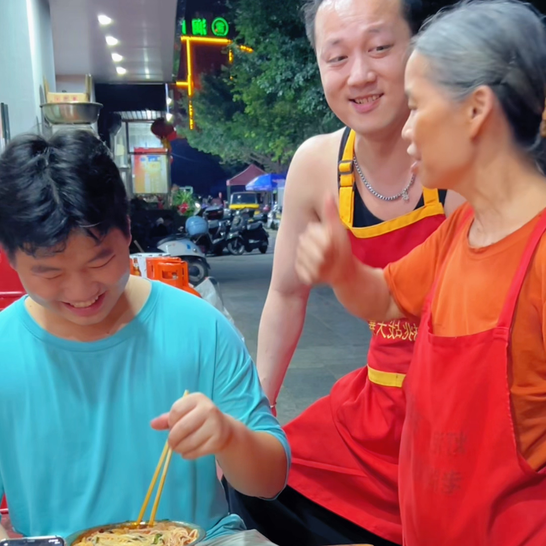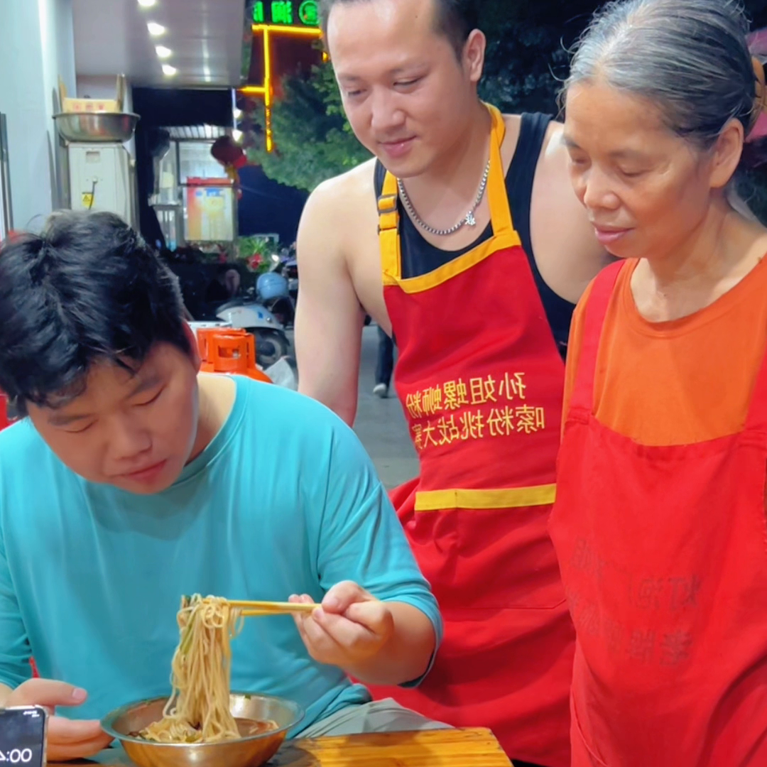 螺蛳粉好卖吗?好卖,抢着买的。说明阿姨这个螺蛳粉好吃是吧?对,特别好吃,每天都要吃上两包的。你不挑战5两吗?两包都不够吃,今天胃口不怎么好不能挑战5两,不然我都挑战6两了。阿姨这个帅哥他赢了,你的粉回去拿回去卖给别人还卖,翻倍的卖。这是人家的本事你知道吗?你有这个本事可以拿去卖。对,可以了吗?那就开始了吧,开始。我估计这帅哥能免单都不错了,上次吃5两都吃了20分钟了,但是人家行了,成功了。得个免单不错也好是吧?不行了,他要赢粉回去卖的。争取30秒了是不是最近生活费不够了?又来进货拿去卖。没有生活费了是吧?那就加油,你一分钟吃不完了。