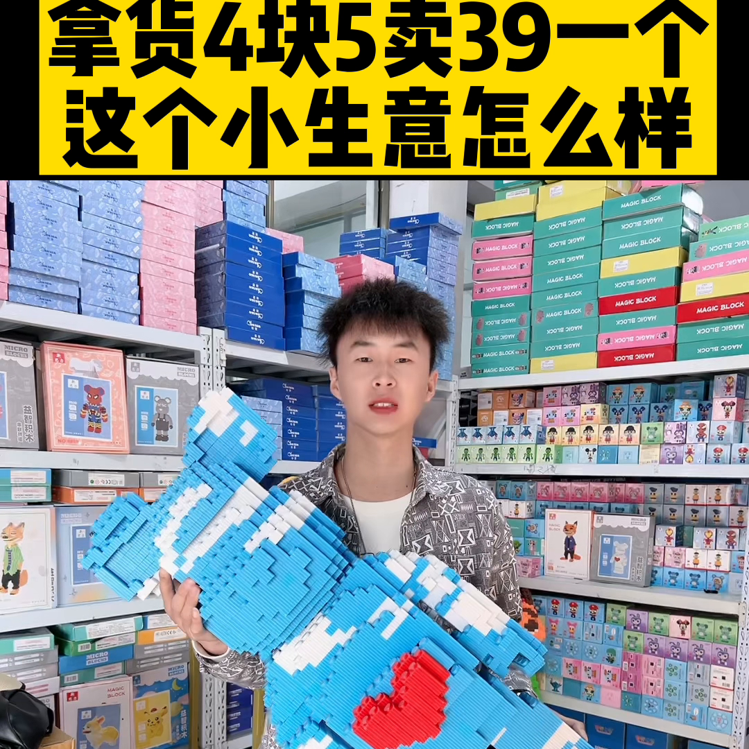 你看我们家的分大中小号,这个也是4块5,所有你看到的你看4块5,这些都是拼成的是吧?拼成的拼成的没有?如果是说没拼成的就是这种,就这种是有4,800粒的,他这是1,0004,800粒。这个拼成就这个,我看拼成就这个,你看一下挺像的,就是一模一样而且挺像,这个4,800例是吧?对,这个小孩子就是现在小孩子一般都喜欢玩这种乐高,因为他们现在不是经常玩手机,他们远离手机,玩这种乐高有至于加强他们的动手动脑能力,能增加动手动脑,如果小孩子不会拼也不要紧,每一个里面包装里面都有那个教程的,都有教程是吧,而且每一个都是独立包装,你看到的所有都是独立包装,这边是一个展示图的,你看拼成的大大小小的都有,这个乐高真神奇,这也可以拼,我看你家款式还挺多的是吧?款式很多100多种多种款式的,这些都是四块五。四块五,我感觉你这个起批量是不是得老大了?我起批量是源头工厂店,你拿个十个八个肯定也不卖,肯定有个起批量,是不是很高?我们起批量也不高,就是针对新手有一个这样的套餐,一千五百八给你300五十套,三百五十套,那就是平均平均四块5吗?对四块5,你在外面摆个地摊或者在公园广场卖一下卖2939的模式,你看一下利润有多少?我感觉这个卖49也有人要,这么大的,对对对你算一下利润吗?对不对?4块5是吧,你就算算你买个卖个29,那我一个20多的利润,一个20多,我一天不说卖多了,卖个五六十个应该好卖,很好卖的。
