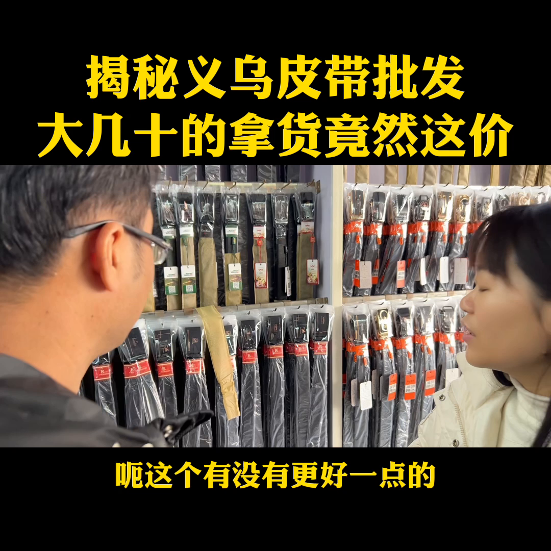 外面卖大几十块钱的皮带,在义乌的源头工厂拿货有多便宜呢?今天咱们来到这个源头工厂店,我们找老板去了解一下皮带,进货价是多少?他的利润有多少?走。老板你好,我不是老板,我拿货了。这个你知道多少钱吗?这个拿几块钱吧?你问一下几块。对。好的。老板。你好,我想了解一下你们家的皮带,可以给我介绍一下吗?可以。这拿我家了是吗?我刚才拍拍视频。可以。你看一下我们家的皮带,是这些吗?这对就混搭的吗?对。盒子装的是吧?对。你看一下这些都是你看看今年的网红款,这个是可以旋转的,可以旋转,还带钻的这种。这种我看外面都是卖那个大几十块钱,这边拿货价能不能方便透露一下?8块钱。不敢相信义乌的皮带这么便宜吗?是啊,那没有利润。谁谁谁卖是吧?我再给你介绍一款便宜的。好还有便宜的。你可以看一下这边,好的。你看这边这些就是便宜的,这些就是便宜的,对像拿去赶集、摆地摊。这3块5,才3块5,简直就是颠覆了我的认知。有没有?还有,没有了。还有一款就是比较柔软一点的。这边这些5块的也是跑量的,也是跑的,对跑的比较好的,就是拿去卖个10块,15块。对。对。这个感觉比那3块5有好多,这个有没有更好一点的?更好一点啊?你看一下这个这些,这个是加长款。加长多长?1米3啊?对。原来是1米2的。这好软好软。这个什么价?18啊18呀?对这个可以。这个不错这个不错,对。你这边老板这个做皮带做了多少年了?十几年了。是啊,你看看,我看款式也是非常的多。对。就是有没有量的要求,我们这边300条起拿,300条就可以拿。对。我那太好的量也不是很大,可以混搭,可以混拿就可以挑款。对可以挑。那太好了,老板是这样子的,就是我这边如果后续有需求了,我跟你这边对接。好的。感谢老板的分享谢谢,不客气。