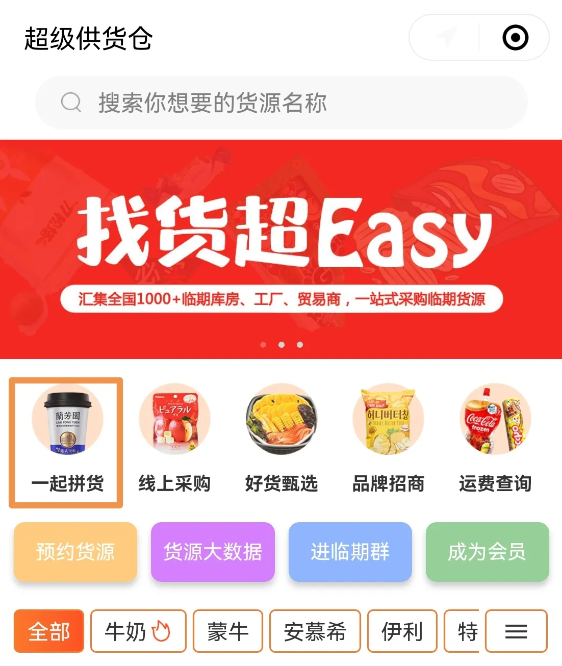 找就近的货源,因为离你近的话这样运费就会相对来说很便宜,有的仓库同城的还会做配送,这样的话是不是就会把运费这块成本压了下来。怎么找了?我们临期食品货源平台超级供货仓上面有一个离我最近的功能,你点击离我最近,离你最近的货源方就会出来,如图: