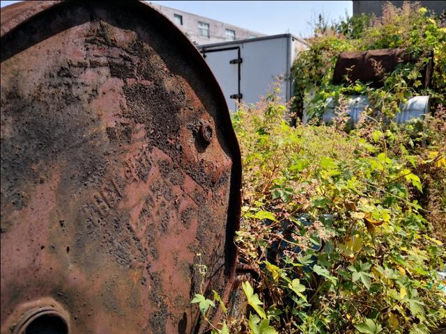 站在这个位置,可以看到那只大油灌,过去它可能鹤立鸡群,现在已沦落到与油桶为伍了。