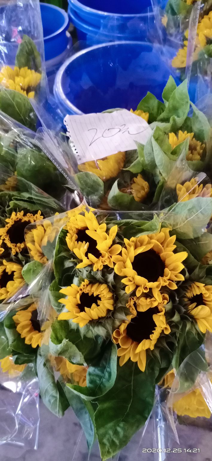 买了一束粉色玫瑰12枝10元,1元一支的观音竹,15元两盆的发财树(一位老阿姨讨价还价买得更便宜,老人家嘛,照顾下),香水百合10元10支,单头的。