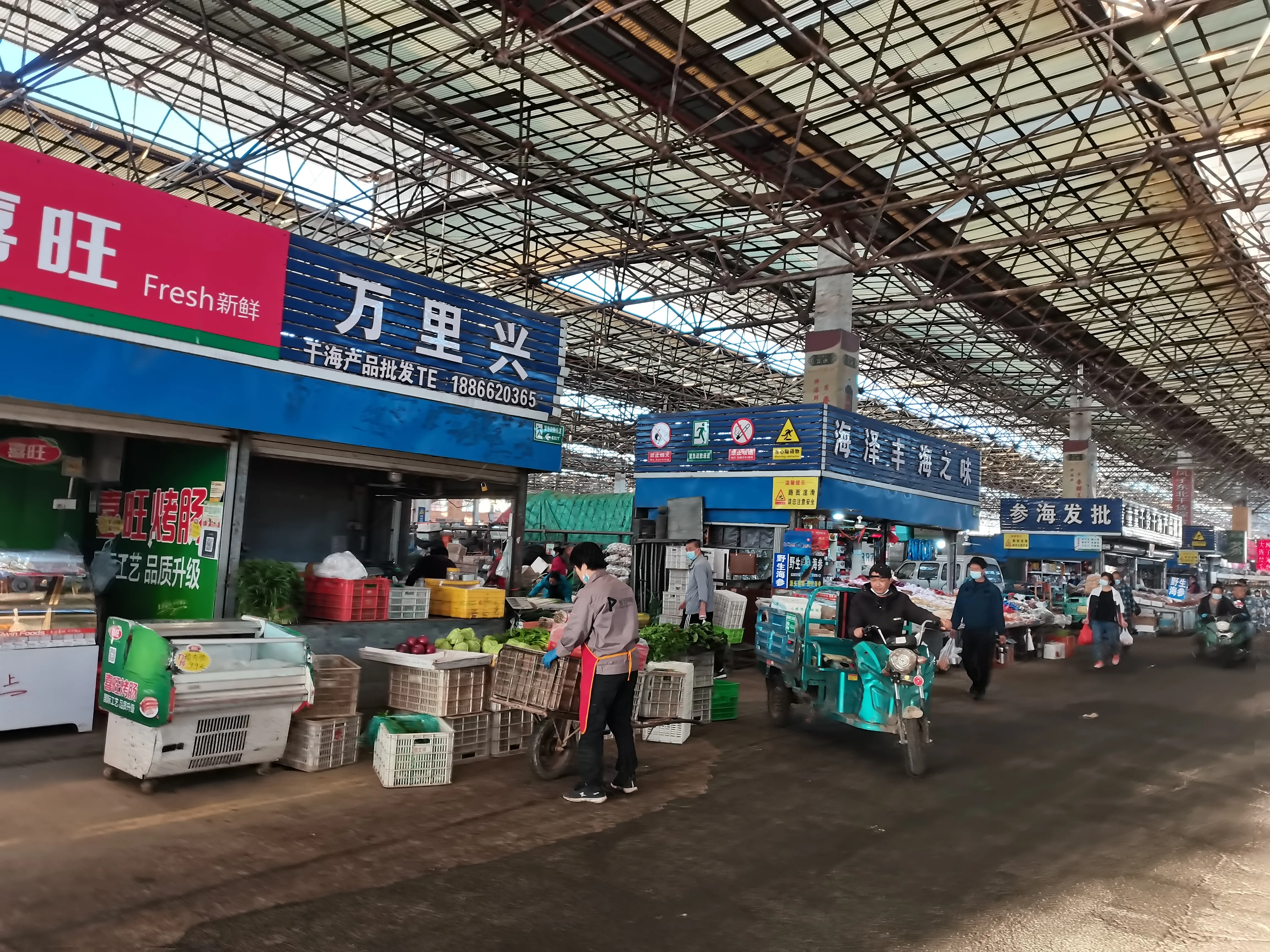 清早六点半左右,我们出门跟着二哥逛市场,一路上我都怀疑,这么早,能开市吗?有人吗?侄子上班开车顺路送我们到达目的地,一进市场,我就看到了一派繁忙和热闹,采购的人拉着小推车络绎不绝,各个摊主笑迎前来询价的顾客,充满生机的市场让我看到了烟火生活的温暖!