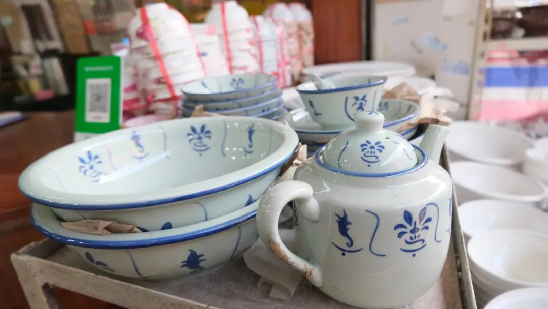 南泰这里最出名的是卖餐具,走在街上,随时能看到图一店铺门口的篮子上装着各式各样的餐具。
