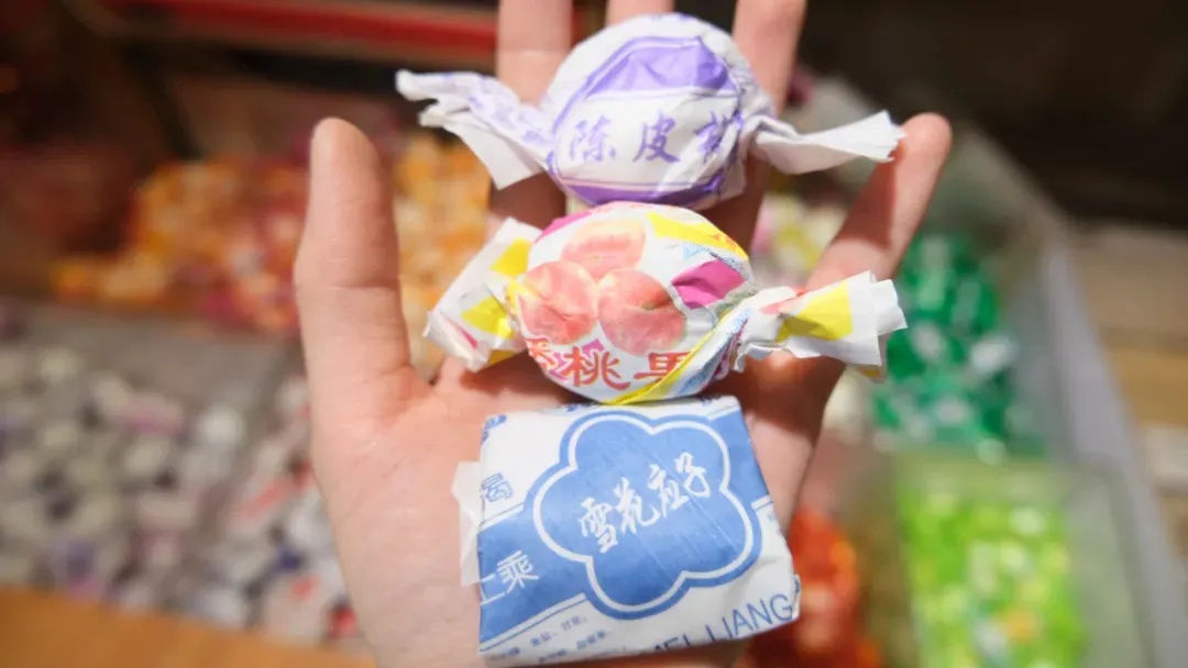 除了一些进口的零食,这里不少店铺卖起了论斤称的东西,是不是让你想起了回老家逢年过节买年货的时光?