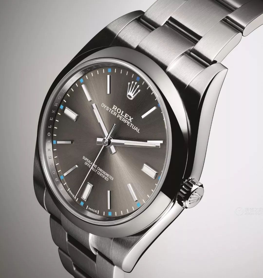 深灰色的圆形表盘,太阳纹效果,条形时间刻度;这款劳力士的设计可以说非常简洁,毫不做作。人们所说的一“劳”永逸,就是对劳力士品牌产品的肯定,喜欢劳力士的表友可以选这款作为入门款。