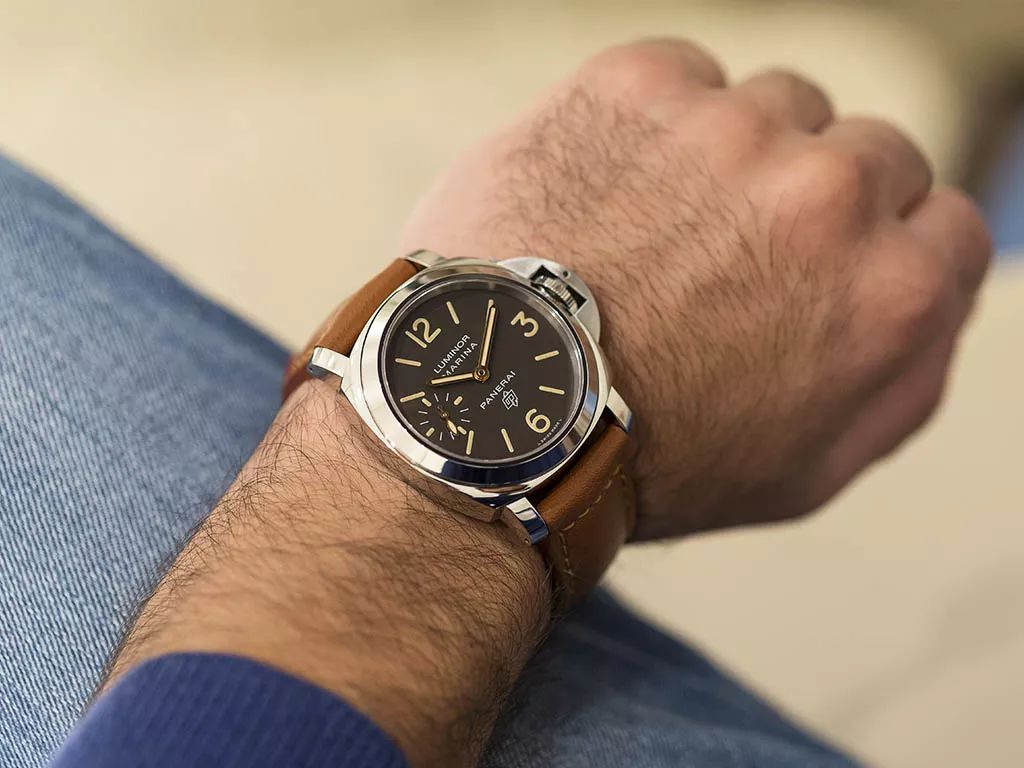 沛纳海的腕表向来以“厚重”出名,正是因为独具特色的大护桥设计,让腕表从视觉上增加了一个size。体型庞大、外观霸气是沛纳海的标签,表盘直径为44毫米,厚度13.5毫米,不是一般人能驾驭得了。戴上沛纳海,秀出肱二头肌,完美!