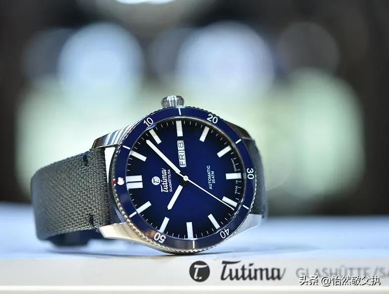 德国首款配备飞返计时功能码表,兼具美学风格与实用功能。拓天马这个系列其实有用到精钢表带和钛表带的款式,但这款蓝色表盘搭配织物表带的款是颜值最高的。