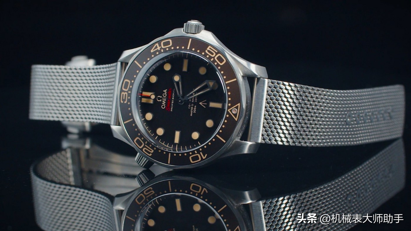 欧米茄海马300的性价比很高,但时间长了难免让人视觉疲劳。海马007特别款通过标新立异的设计,做旧风格和常规海马300形成了明显的风格差异。取消了日历,大胆采用棕色盘面、表圈和整表哑光效果,钛合金米兰带做工也非常精致到位。