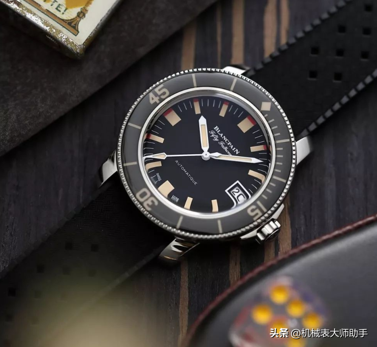 宝珀五十噚主要就两个系列,陶瓷圈款式给人的感觉很LOW更像是低配,而且防水效果也不理想。高端一些的蓝宝石圈款式各方面都比较优秀,但是45毫米的尺寸让很多细手腕表友望而生畏。