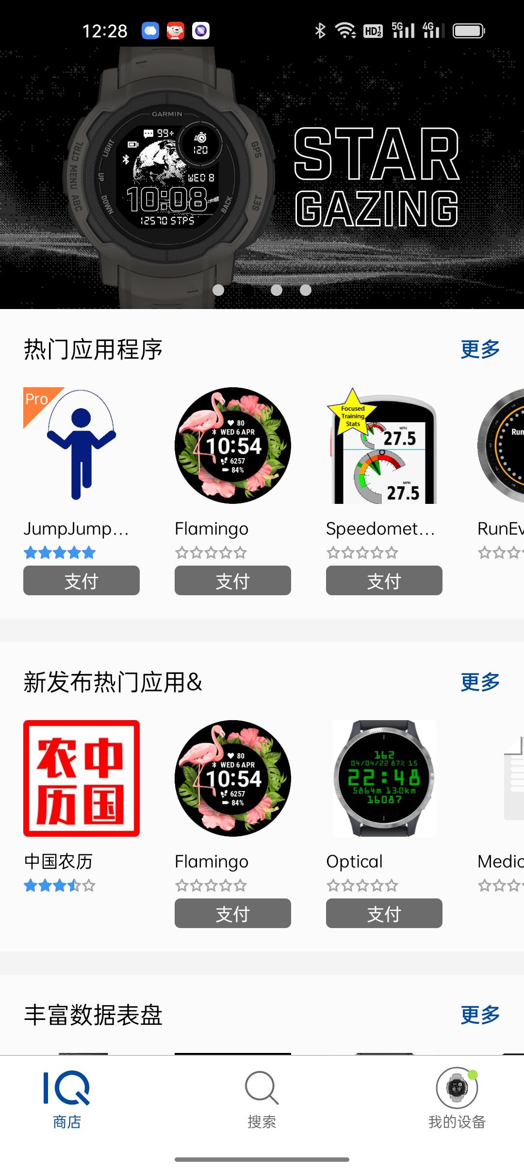 除了手表内置的表盘和小工具,还可以通过Connect IQ安装更多的应用程序,进一步丰富手表的功能。
