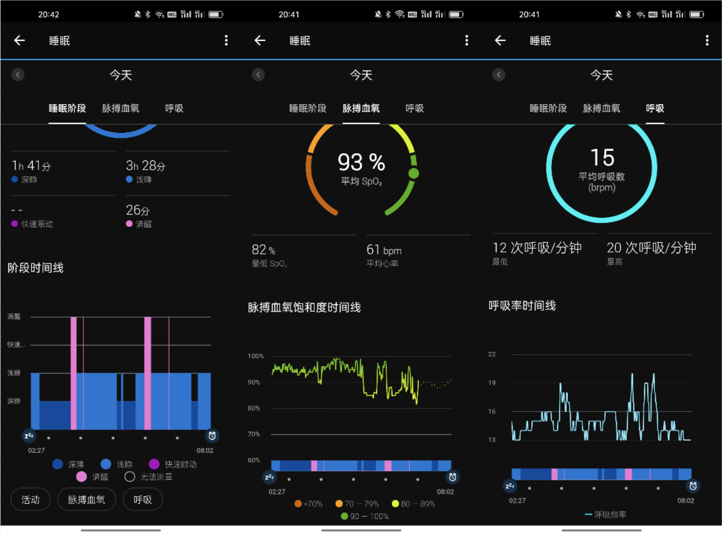 每一项数据都有着更加详尽的分析和说明,可以更加直观地了解到自己的身体情况。比如睡眠这一项就可以了解自己的睡眠质量、血样、呼吸情况等。