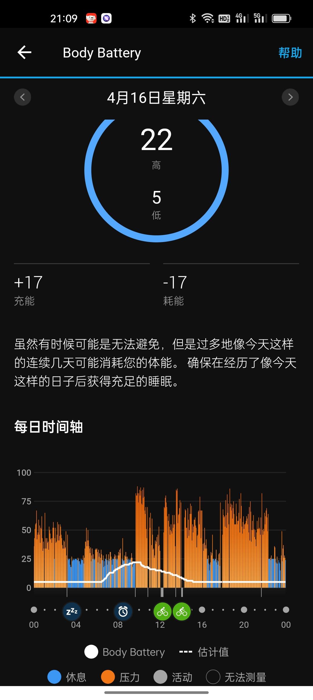 还创新的引入了了Body Battery(身体电量)概念,可以让我们对自己的身体有了更加直观的认知,休息是“充电”,运动和工作等自然就是是“耗电”。通过自己的”电量“来决定接下来是要休息还是继续努力,从而有效地避免透支身体的情况发生。