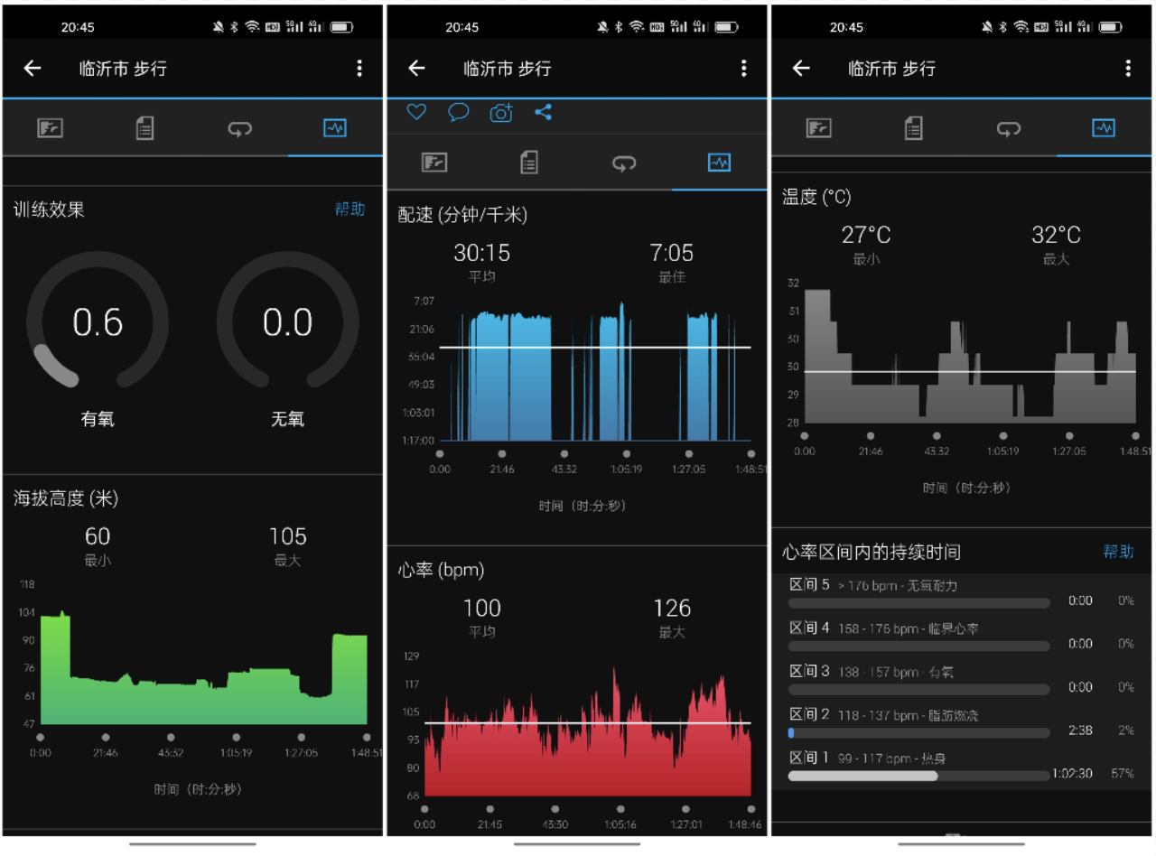 前面也说过了佳明自带了50多种运动的数据监测功能,基本涵盖了日常生活中能够接触到的各种运动项目了,以我当天的步行为例详细说一下。