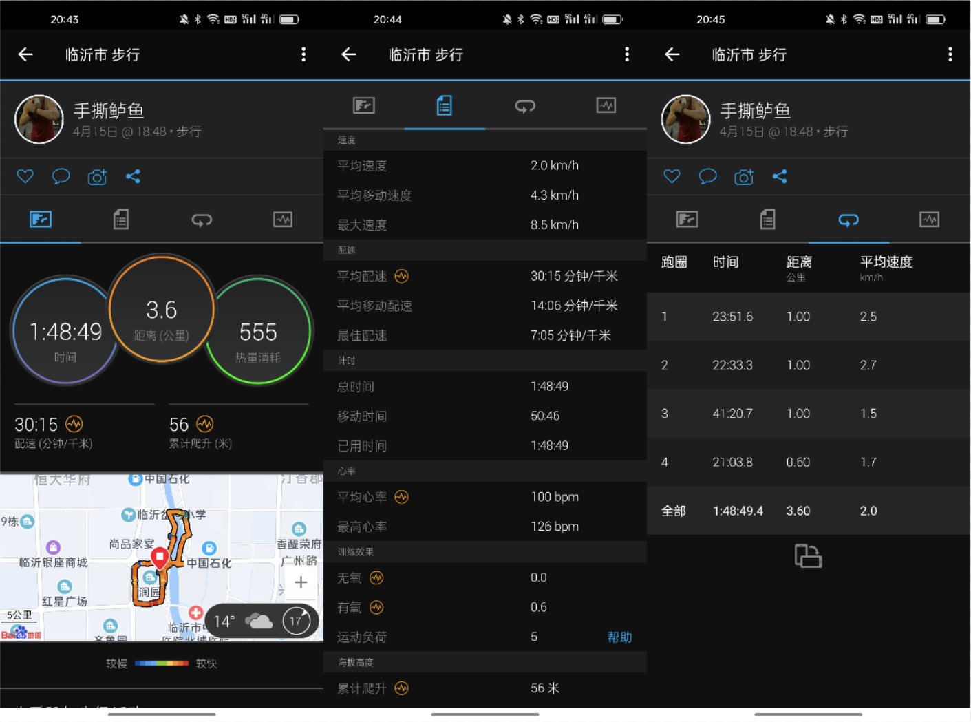 运动完成后,除了手表上能看到各项统计以外,在APP中可以看到更加精细的记录和分析,包括运动轨迹、运动分析报告等,内容十分详尽,精准度也很高。