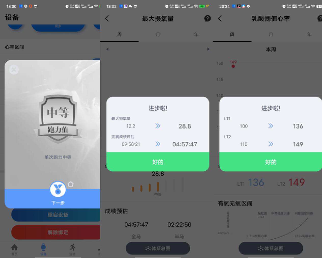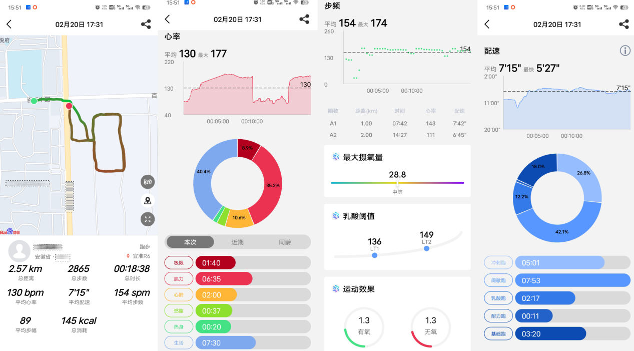 其他还有心率,最大摄氧量,乳酸阀值,成绩预估等等,都是一些比较实用的功能,没有花里胡哨的功能页面,相当简洁。