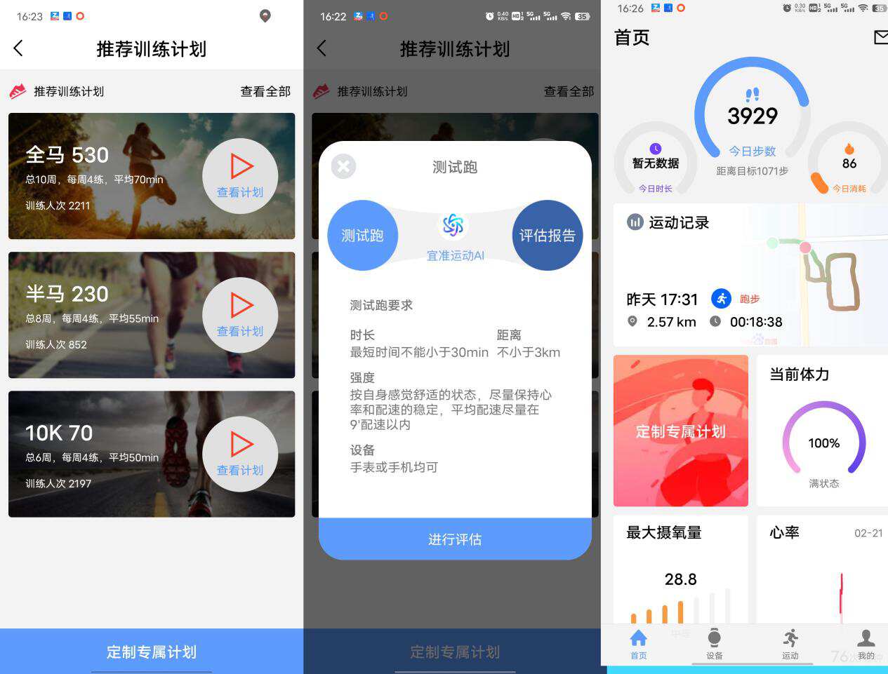 下方的6宫格卡片内容则是定制专属的跑步计划,这里面有很多相关的跑步计划内容,半马,全马10公里,5公里等等,对于跑步萌新来说,可以根据计划来进行跑步训练。