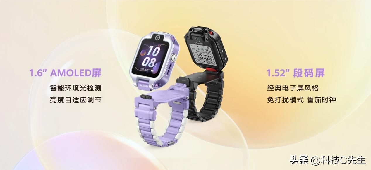 这次华为儿童手表5X Pro是非常值得推荐的一款儿童手表,它有着1.6英寸的AMOLED屏,显示效果是非常地自然和细腻,视觉效果好,亮度自适应调解,另外还配有一块1.52英寸的电子码表风格屏幕创新的产品形态,也带来了更多的使用场景。比如在孩子阅读,写字时,可以翻转副屏,自动开启免打扰模式,会把信息和来电保持静音,避免被干扰。