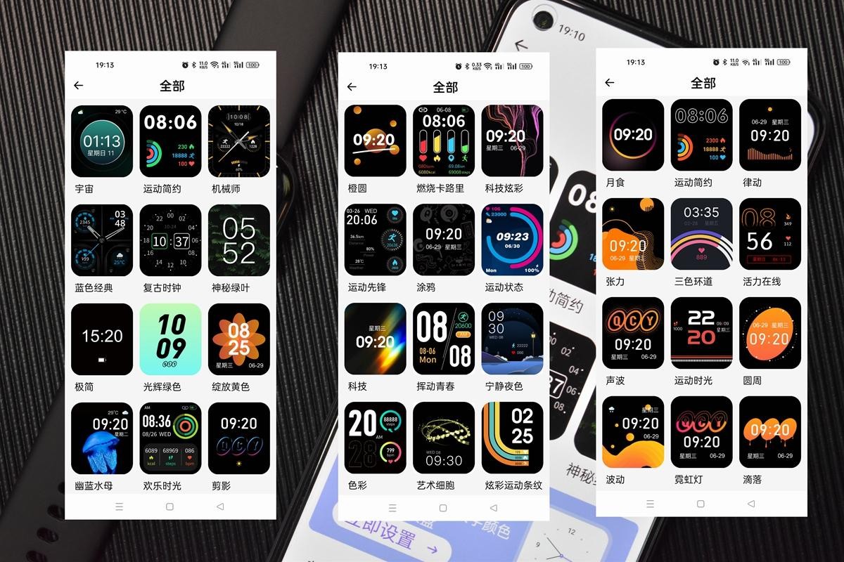 QCY Watch自带近百种表盘方案,用户可以根据个人喜好进行选择,这么多款式相信总有一款适合大家。
