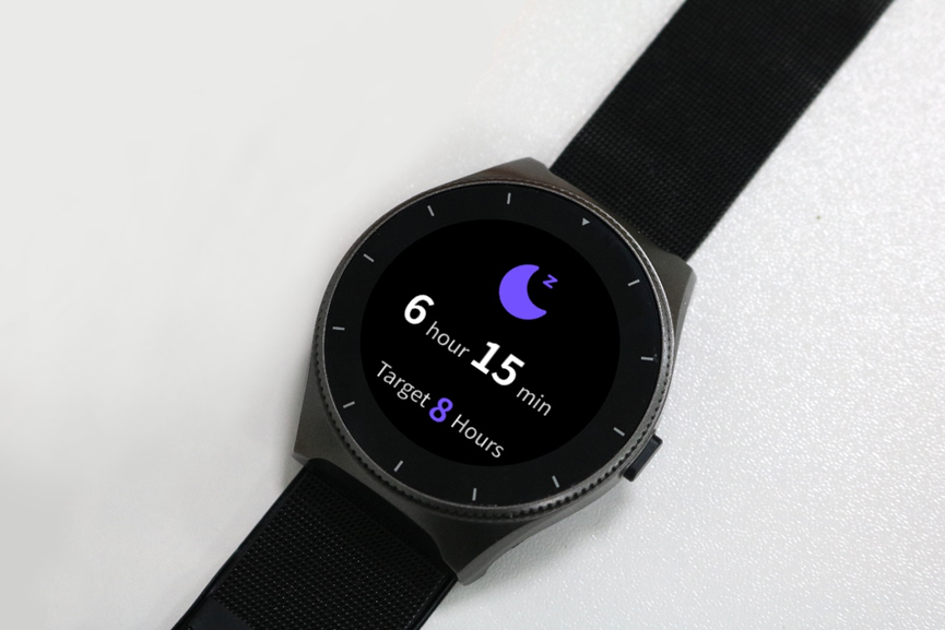 心率、呼吸率、体温等测量也是这样,点击即可进行。此外,这款手表还可以进行睡眠监测,戴着它睡觉的话,可以设置睡眠目标,统计睡眠时长。这个功能对我妈来说特别适用,因为她睡眠不好,通过这个监测,可以让她调整睡前状态和饮食,保证一个好的睡眠。
