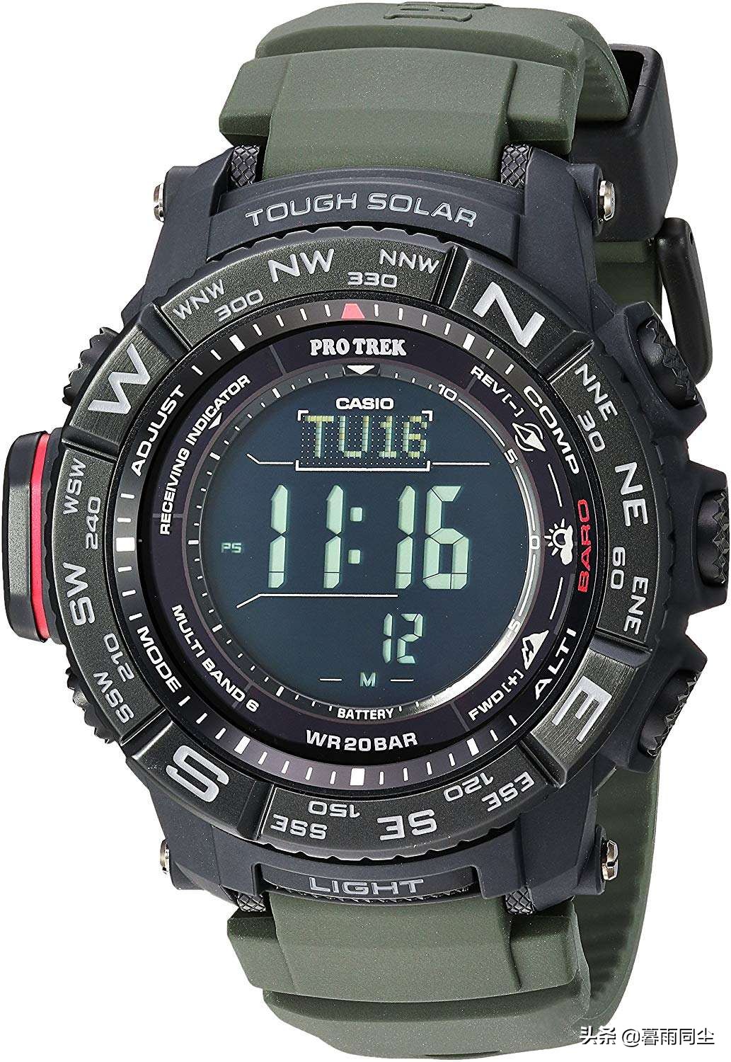 卡西欧Pro Trek PRW-2500T-7,每天最多接收 6 次的校准无线电信号可以保持准确的时间。
