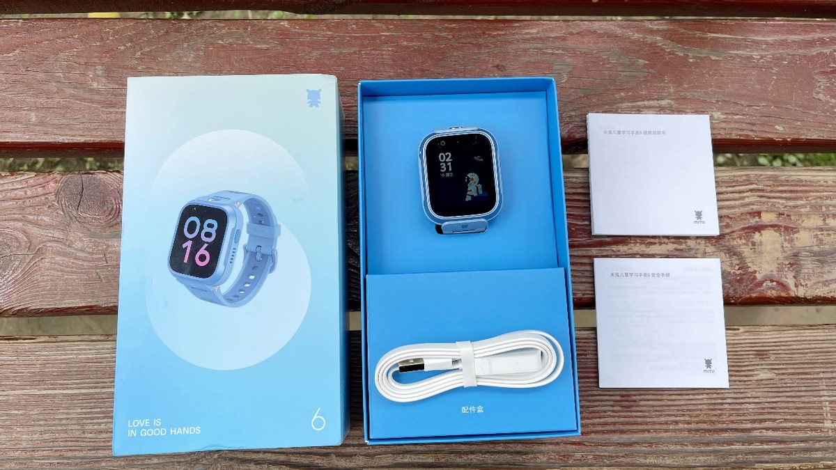 在包装方面还是非常简洁,包括手表主体、说明书、充电线。给大家奉上米兔儿童学习手表6的全家福。