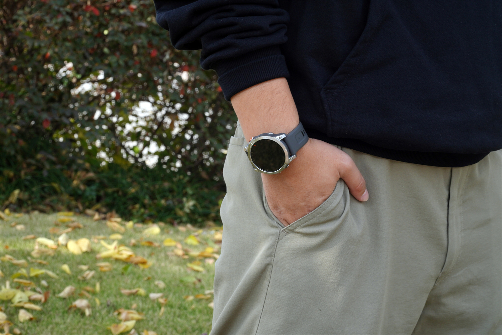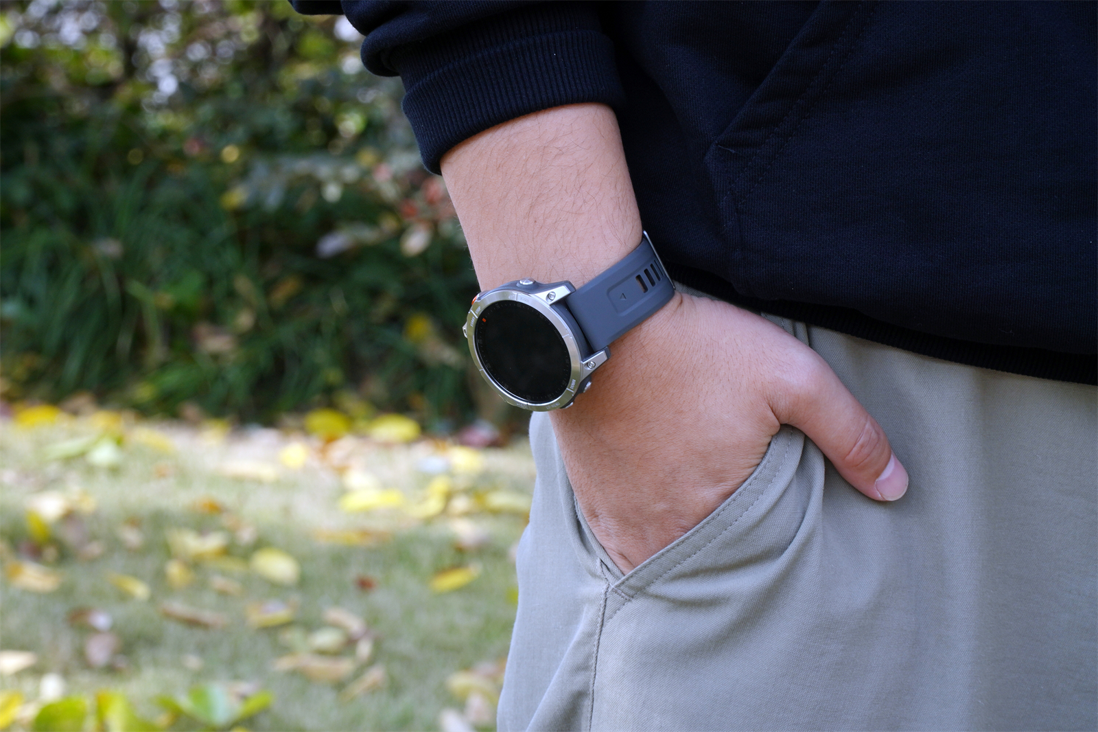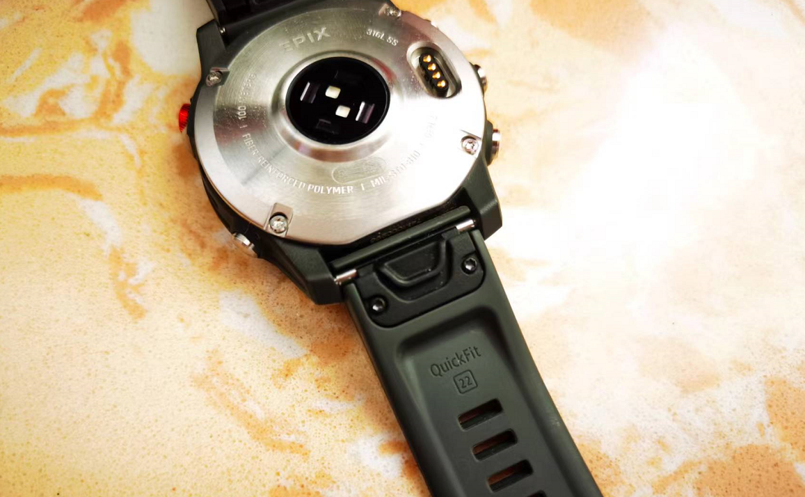 官方给出的数据说佳明EPIX智能手表适合130—195mm腕围的人,通用性还是非常不错的。配套的硅胶表带也很舒服,既不像金属质地那么冰冷,也不像皮质表带一样容易磨损,舒适度和易清理度都相当不错。